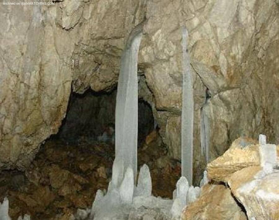 Geologically the dolomitic rocks (dolostone) of the west side of Kūh-e Dārangūl (Angoul Mountain) moving along fault lines during earthquakes opened the space that created the cave. It dates back to The Triassic (the first and shortest period of the Mesozoic Era) which is almost 251.902 (+/- 0.024) million years ago. One of its spectacular features is the freezing weather inside which is caused by the always existing ice and icicles on the walls that is the reason it is named ice cave.