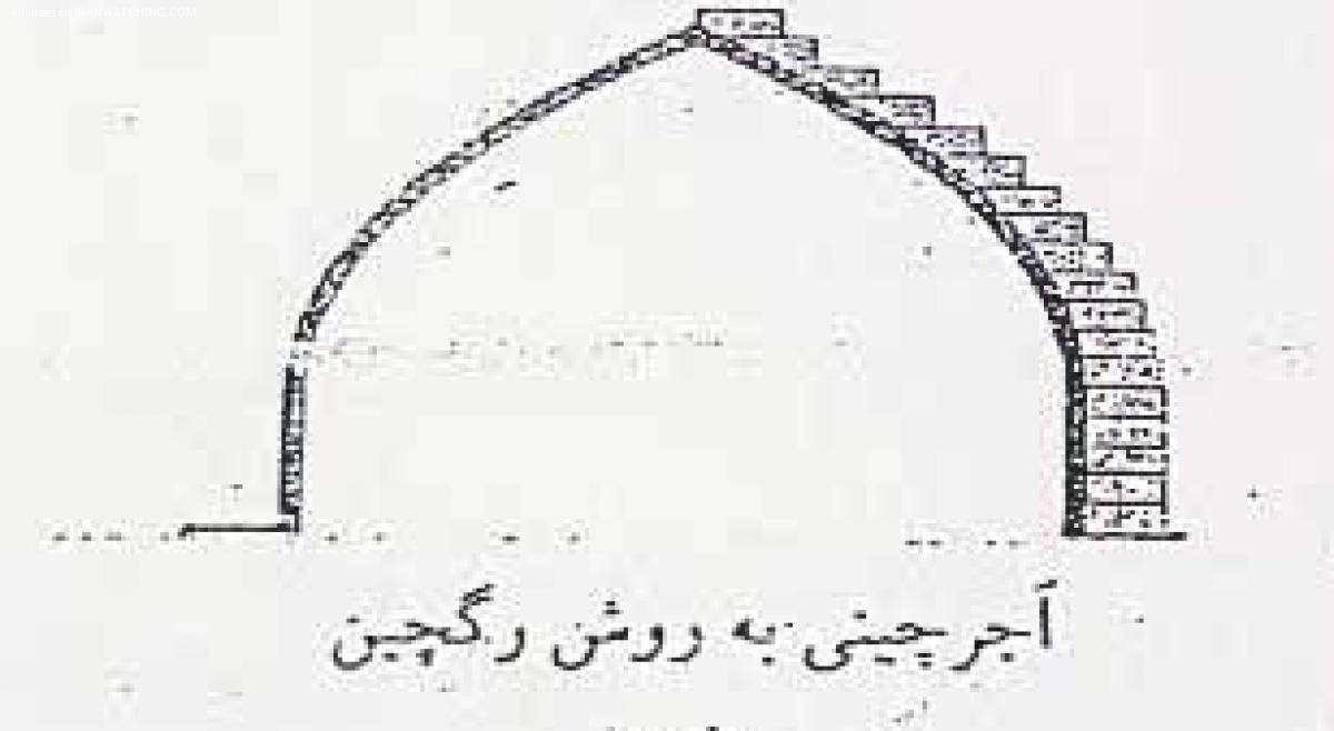 به این طریقه رگهای آجر متمایل به مرکز گنبد است و به صورت شعاعی چیده می شود.
