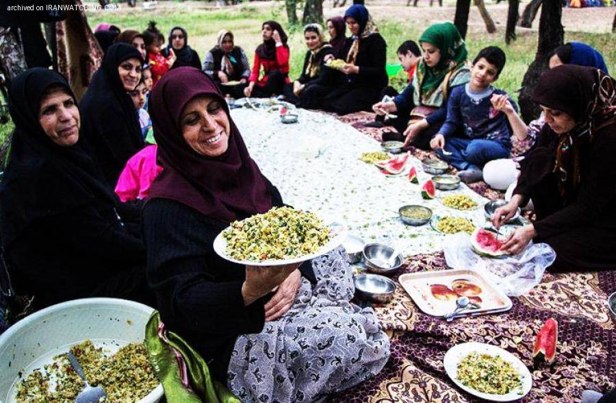 در کنار این مراسم دعا و شکر مردم سفرههای عصرانه را در طبیعت پهن میکنند و همراه خانواده خوش میگذرانند. آش رشته و دیماج (عصرانه سنتی شهر قزوین) غذاهایی است که معمولا در این مراسم خورده و نذری داده میشود. مردم در کنار این دو غذا باقلوا، آجیل و شیرینیهایی که از عید باقیمانده را نوشجان میکنند.