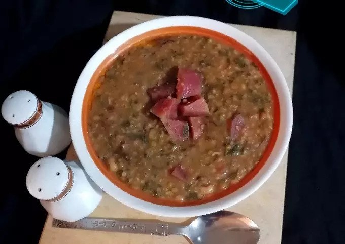 - لوبیا را به ماش و آب جوش اضافه کنید و 1 ساعت اجازه دهید تا با هم بپزند. در همین میان کمی نمک نیز به آن اضافه کنید.