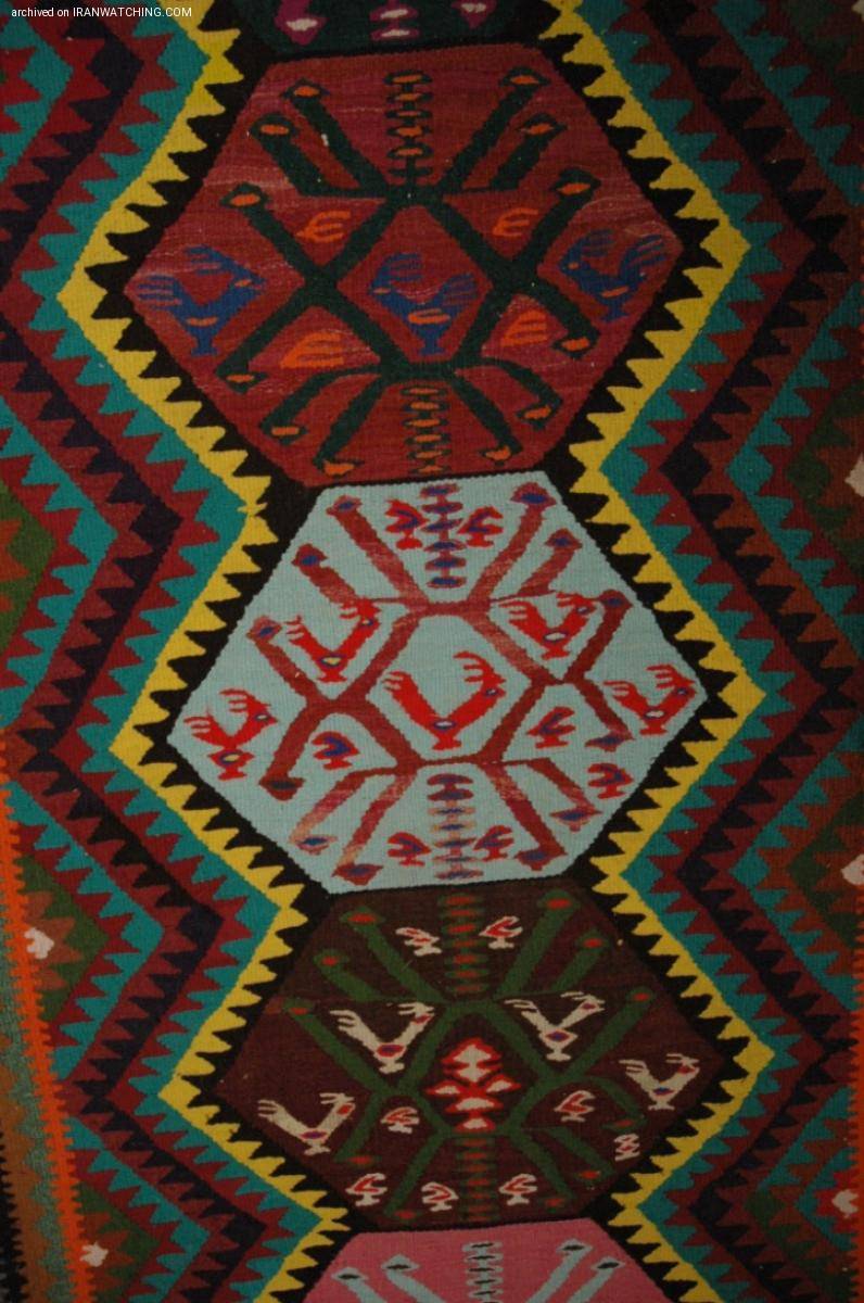 - ب- تعدد نقوش و تکرار یک یا دو نقشمایه در کل گلیم ب صورت واگیره