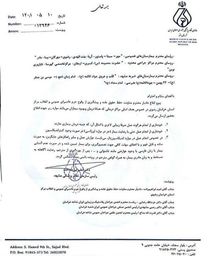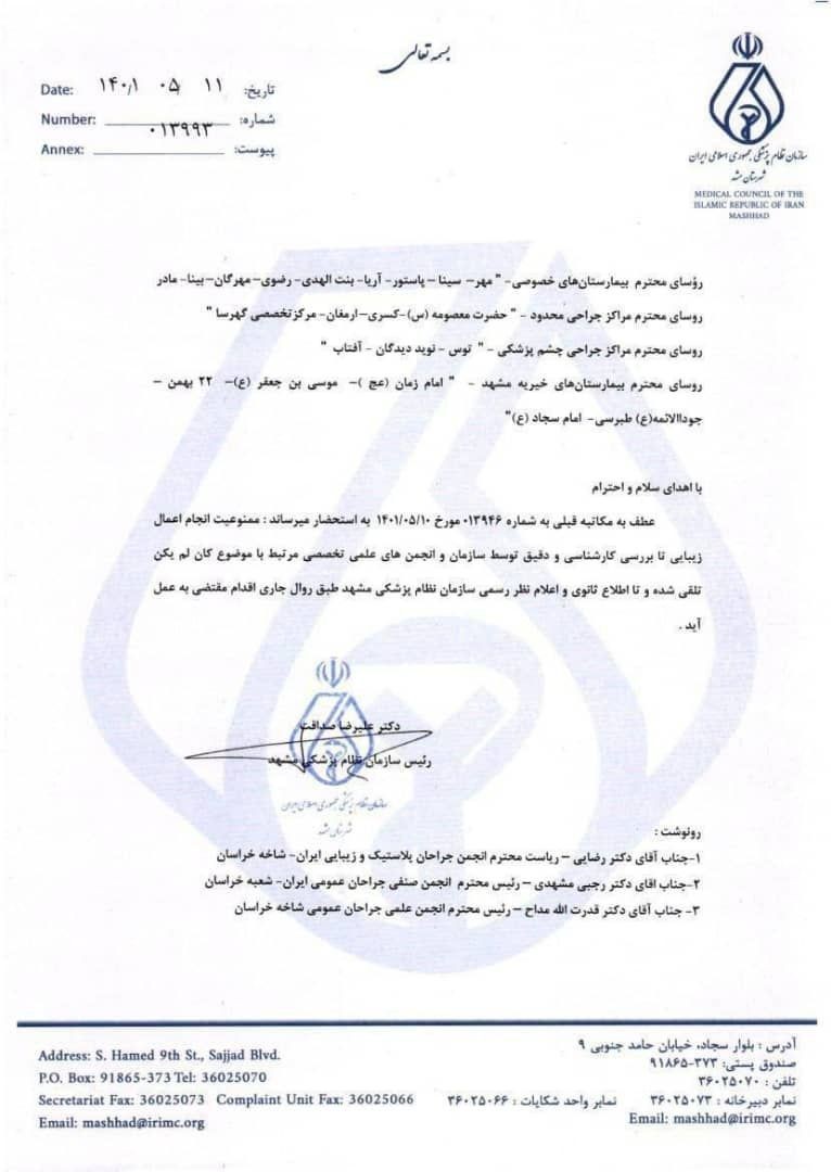 بخشنامه ای که یک روز دوام داشت! - اعلام و لغو ممنوعیت انجام جراحی زیبایی به بیمارستان های مشهد بخشنامه ای که یک روز دوام داشت! - اعلام و لغو ممنوعیت انجام جراحی زیبایی به بیمارستان های مشهد
