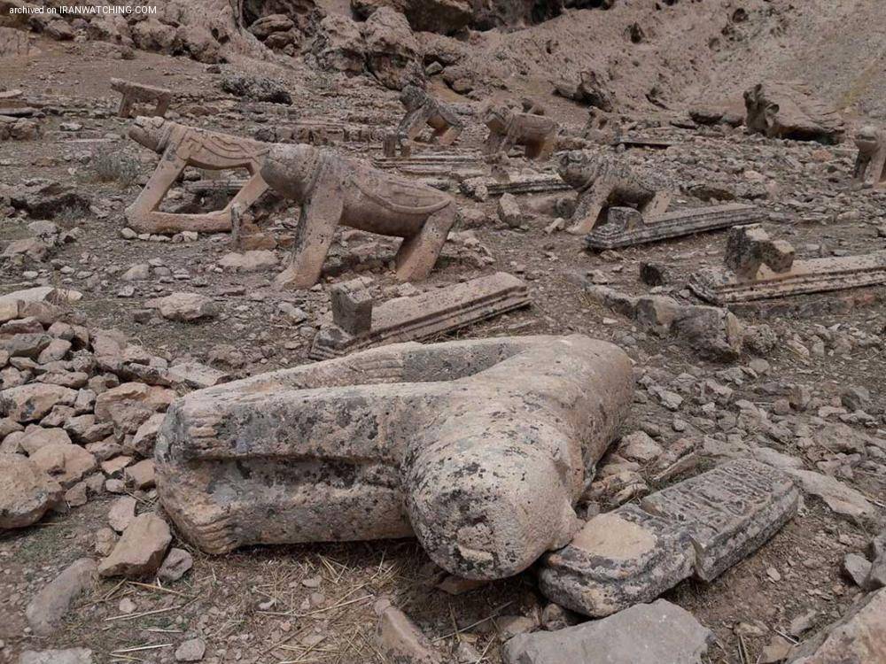 شیرهای سنگی آرامستان ثبت ملی شده در ایذه را شکستند