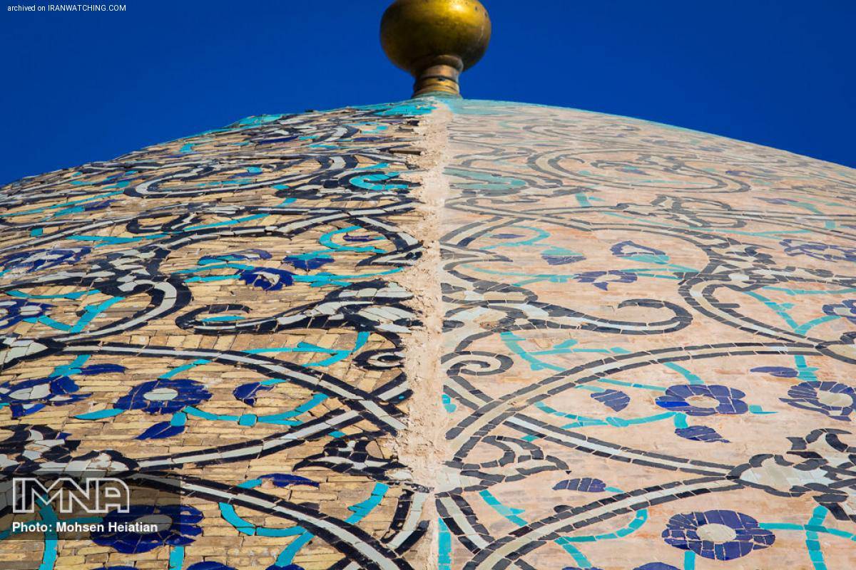 او همچنین در مورد تغییر رنگ گنبد گفت: به دلیل نفوذ رطوبت به بستر آجری و سایر ترکهای مرمت نشده و وجود آلودگی بر بستر آجری و کاشیها، رنگ بخش مرمت نشده تیرهتر به نظر میرسد که با مرمت بخشهای دیگر این مشکل برطرف میشود.