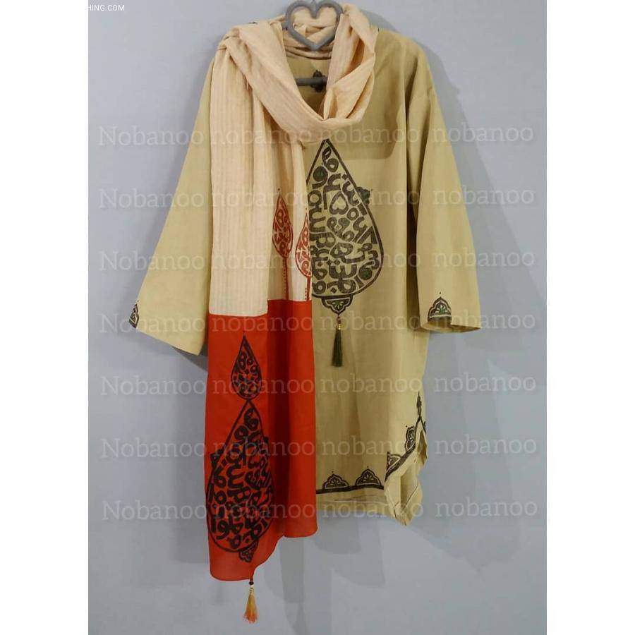 شال هنری و دستدوز نوبانو - مزین به هنر چاپ دستی