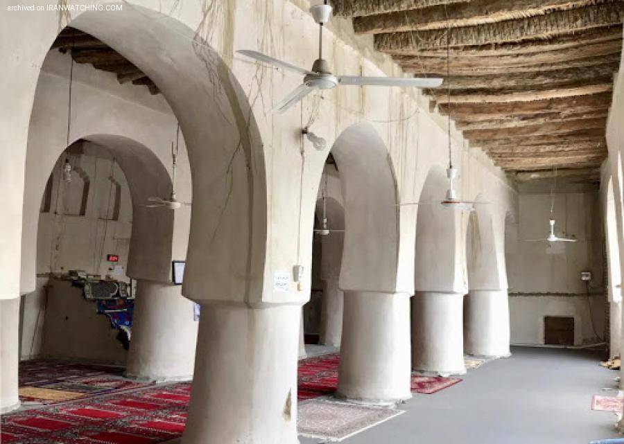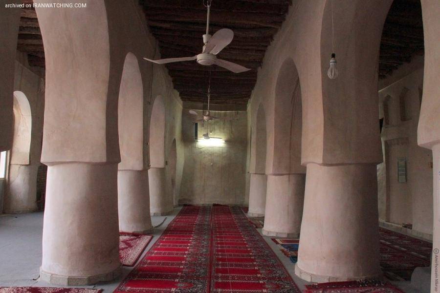 این مسجد 20 ستون پافیلی و زیربنایی 900 متری دارد. سقف این مسجد را از شاخهها و تنههای درختهای خرما و گز ساختهاند و روی آنها را مجددا با حصیری از برگ خرما پوشاندهاند و سپس روی آنها را کاهگل کردهاند. این موضوع سبب خنکی فضای داخلی آن میشود. تزیینات دندانموشی را هم میتواند در طاقچههای درون آن دید. تمام دیوارهای این مسجد نیز از خشت و گل ساخته شده است.