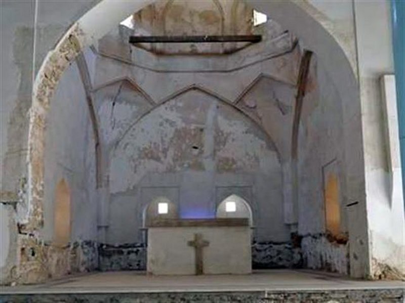 مهمترین قسمت کلیسا، محراب آن میباشد که توسط پلههایی که به صورت قرینه در دو طرف آن قرار دارد، به تالار متصل میشود. این بخش از یک مربع تشکیل شده است که سه ضلع آن طاقنما بوده و از سمت جنوب غربی به تالار باز میباشد. قسمت فوقانی به وسیلهی گوشه سازی به هشت ضلعی و پس از آن به دایره تبدیل شده است و پوشش محراب به صورت گنبد بر روی آن قرار گرفته است.