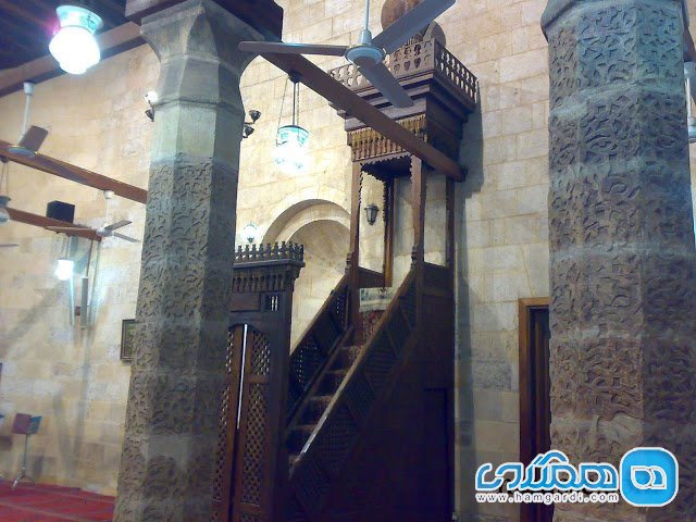 وی در داخل مسجد، منبری از چوب مرغوب و آینهکاری زیبا قرار داد که در سال 1115 هجری قمری، بر اثر زلزله شدید این روستا در زیر آوار مسجد مدفون شد. سرانجام پس از گذشت سالها طی عملیات بازسازی و کاوش، این منبر را از زیر آوار مسجد خارج کرده و بقایای آن را به مسجد رمکان از توابع جزیرهی قشم منتقل کردند تا از آن نگهداری شود.