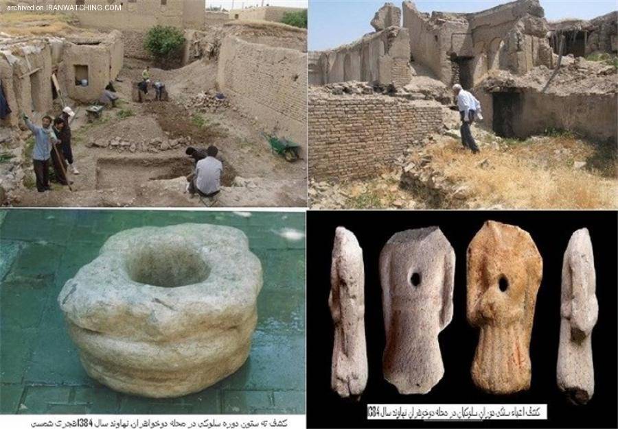 یافتهها و دادههای باستان شناسی شامل کتیبه، مجسمههای مفرغی، ستون، سر ستون و... حکایت از وجود ساختمانهای با عظمت دورهی سلوکی دارد.