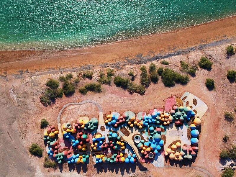 شهرت جزیرهی هرمز بیشتر به دلیل خاکهای رنگیاش است و آن را جزیرهی خاکهای رنگارنگ میدانند. معماران و طراحان خلاق اقامتگاه ماجرا از این امر غافل نشدهاند! از این رو سازههای اقامتگاه را با استفاده از 72 کانی مختلف در رنگهای گوناگون ساختهاند و باید ذکر شود این خلاقیت و معماری منحصر به فرد باعث شد این اقامتگاه در سال 2020 برندهی طلایی مسابقهی بین المللی تیدا متعلق به کشور تایوان شود. این کار علاوه بر ایجاد جاذبههای تماشایی باعث اعتمادسازی بین مردم محلی نیز شده است. اقامتگاه رنگارنگ ماجرا دارای چندین کلبه با معماری گنبدیشکل (برگرفته از آب انبارهای محلی) است که در کنار هم جا خوش کردهاند و نظم در بینظمی، شیوهی اصلی چیدمان این کلبهها بوده و دیگر خبری از صفهای منظم و با فاصلهی یکسان در میانشان نیست و نمای درونی این کلبهها نیز همانند نمای بیرونی رنگی است و دارای تختخواب، میز و صندلی است و پنجرههای بزرگ اقامتگاه ماجرا، هر روز نور و انرژی مضاعفی را به داخل کلبهها دعوت مینماید.