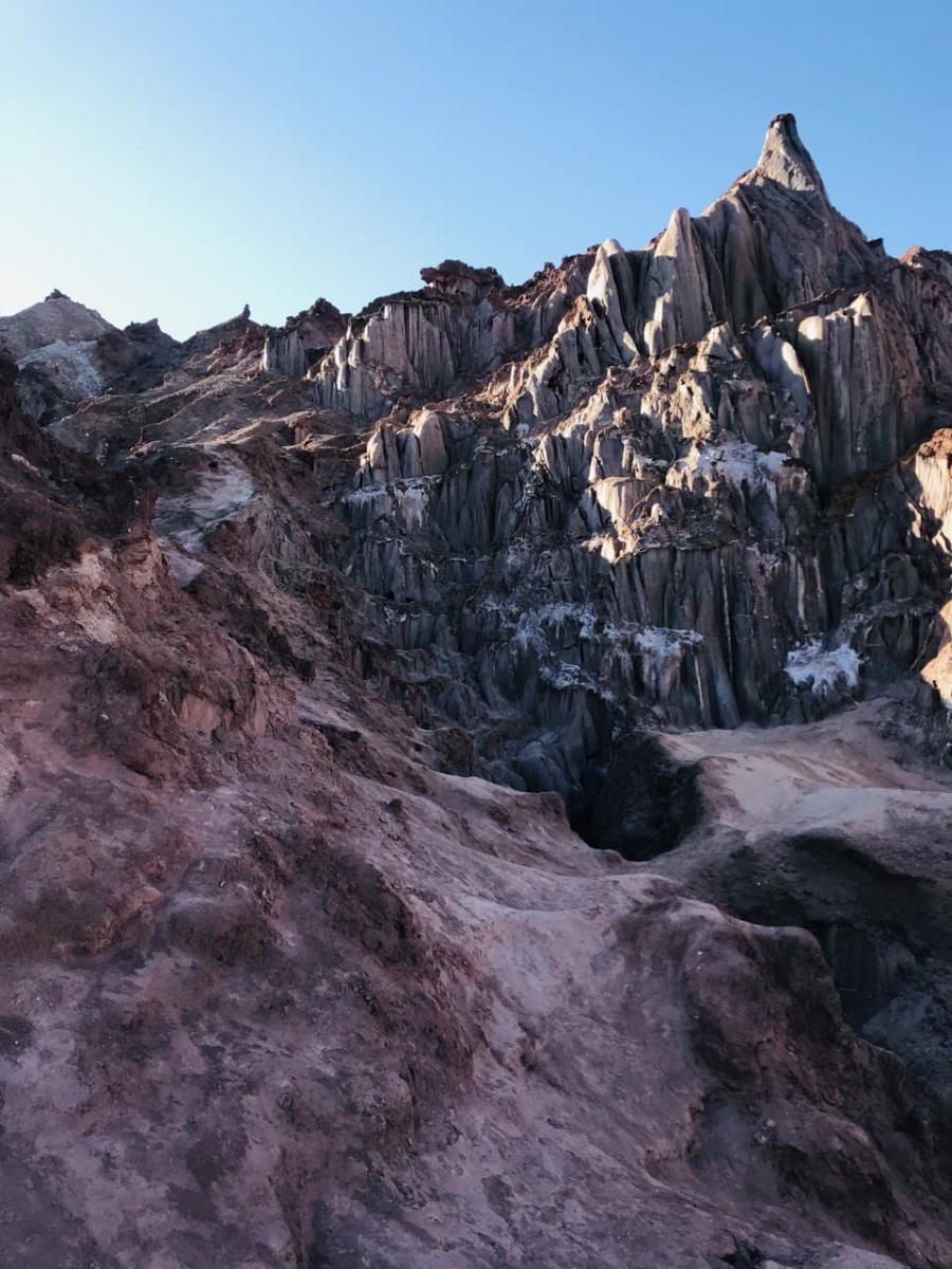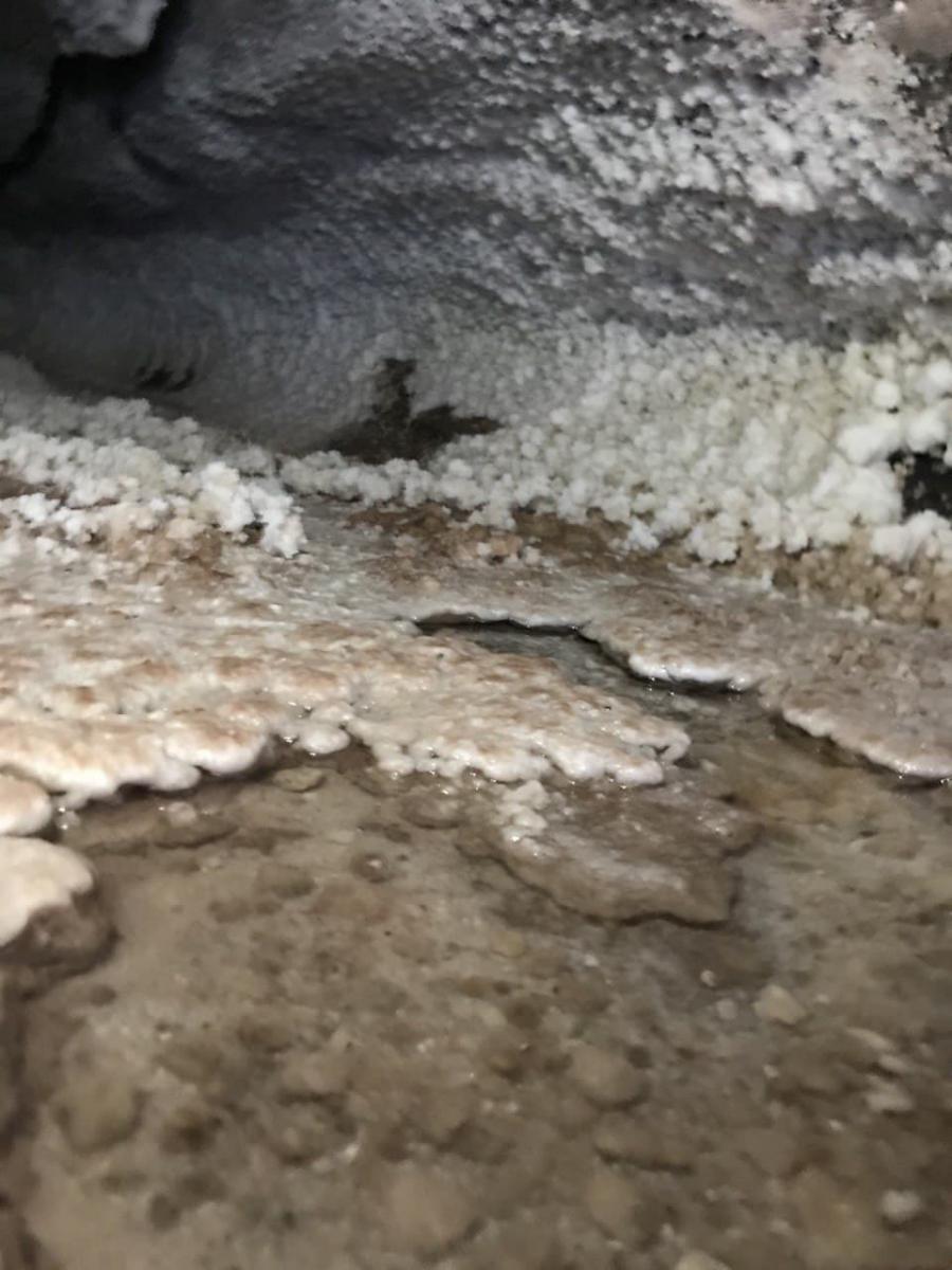 روی هر کدام از این حوضچهها گلولههایی از نمک وجود دارد که به هم میچسبند و لایهای محکم درست میکنند. به همین دلیل است که به راحتی روی آنها راه رفتهاید بدون آنکه متوجه شوید زیر پاهایتان آب نمک جریان دارد. کمکم به غار اصلی نزدیک میشوید. در ارتفاع نیممتری سطح زمین سوراخی وجود دارد که توسط آن به حالت نشسته میتوانید به درون غار سر بخورید. و از اینجا عجایب اصلی شروع میشود. چراغ قوهی گوشی خود را روشن کنید تا بتوانید اطراف خود را ببینید. اگر خوب گوش کنید صدای شرشر آب را خواهید شنید. صدا را دنبال کنید تا به منبع برسید. در نزدیکی خود قندیلهایی از نمک را مشاهده خواهید کرد که از روی آنها آب چکهچکه به زمین میریزد و حوض نمک پایین پاهایتان را پدید میآورد.