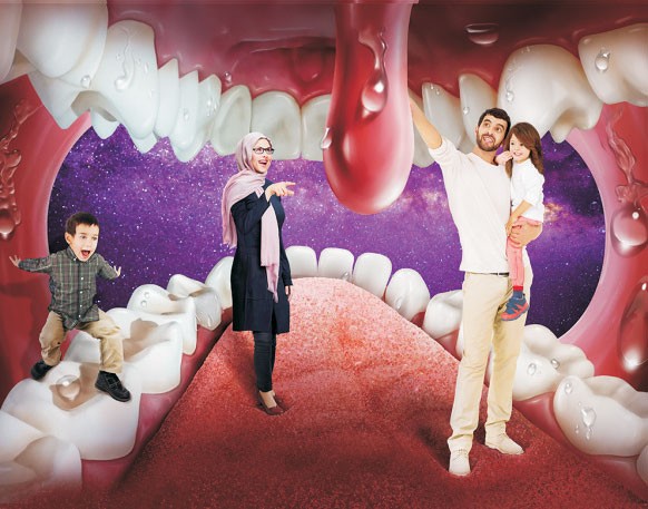 قسمتی که در هیومن پارک برای بازدیدکنندگان مخصوصا کودکان بسیار جالب است دهان است. دهان انسان درون این پارک بهصورت صندلیشکل ساخته شده است. درواقع دهان انسان را در موقعیت بازشده میبینید و دندانهایش نقش صندلی رادارند.