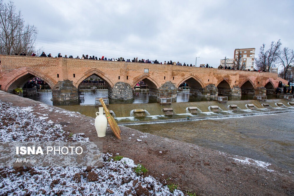 این پل هر سال در صبح چهارشنبه آخر سال میزبان جشنوارهی نواوستی است. مراسم سنتی نو اوستی یا همان سو اوستی به معنای پریدن از آب است. در این آئین شهروندان اردبیلی به ویژه بانوان و دختران جوان از ساعات اولیهی صبح کوزه به دست به محل آبهای جاری رفته و با انجام مراسم خاص و جذابی به استقبال سال جدید میروند. انداختن سنگریزههای کوچک به داخل آب، جارو کردن و دوختن آب، قیچیکردن آب و انداختن لنگه کفشهای کهنه به آب از بخشهای اصلی این آئین کهن است. همچنین آنها در این آیین به تعداد هفتبار از عرض آب عبور میکنند. بسیاری از شرکتکنندگان بر این باورند که در این روز حاجتها و نیتها برآورده میشود.