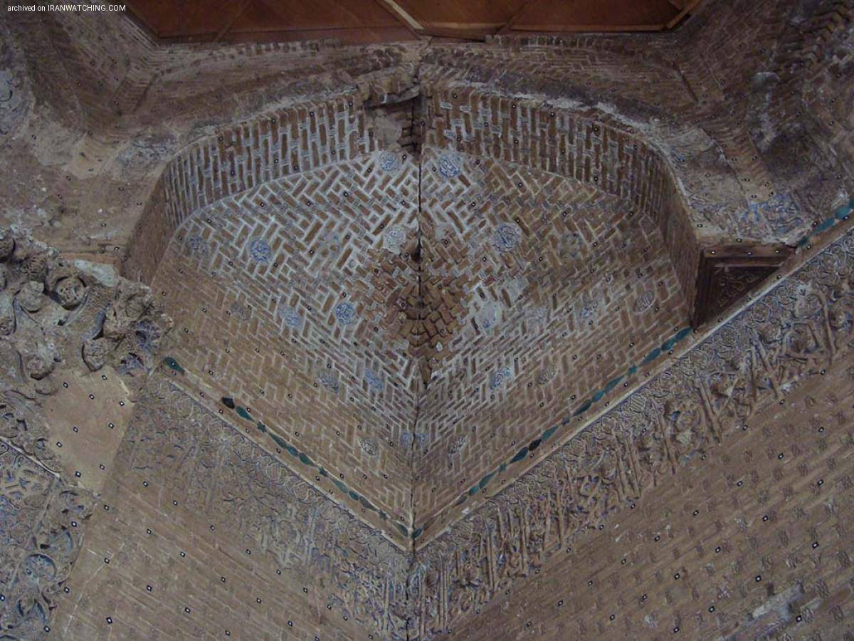 هنر دست معماران زبردست آن زمان در جایجای گنبدخانهی این بنا خودنمایی میکند. گچبریهای برجسته و کتیبههایی به خط کوفی مورق، کوفی ساده و نسخ و ثلث بر روی زمینههای منقوش به گل و بوته و برگ و گیاه، فضای گنبدخانه را پر کردهاست. رنگ نیلی زمینهی گچبریها جلوهی طرحها و کلمات را دوچندان کردهاست. تزیینات محراب در نوع خود بهترین نمونهی گچبری و یکی از باشکوهترین محرابهای دوران سلجوقی است که پیش درآمدی برای هنر گچبری دوران بعدی است.
